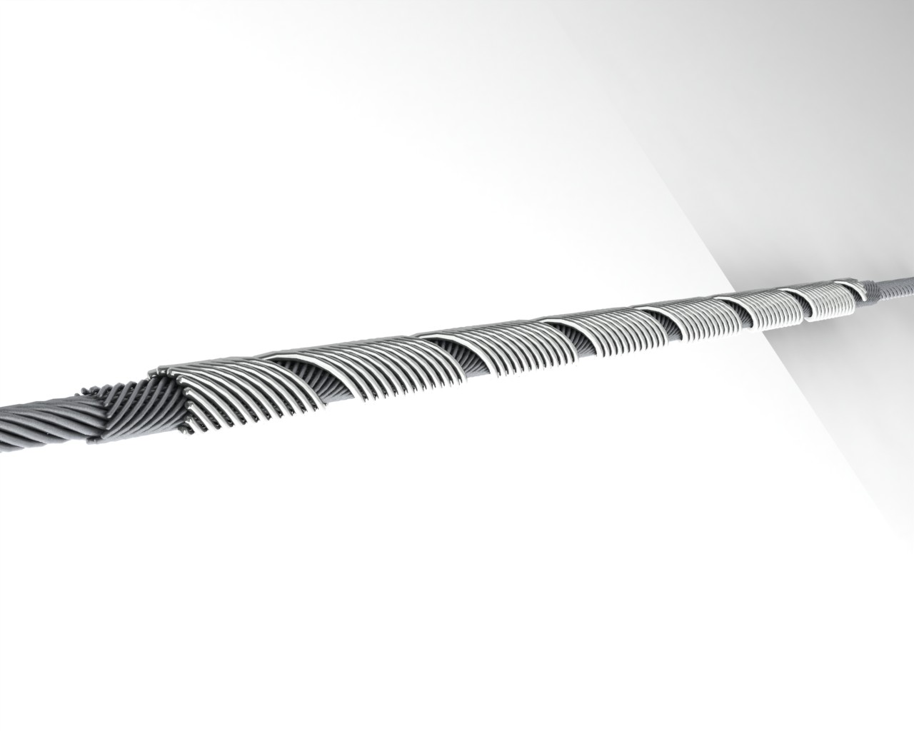 Ремонтные спиральные зажимы типа РС-D-11 предназначенны для восстановления механической однородности стальных канатов при повреждении до 34%.