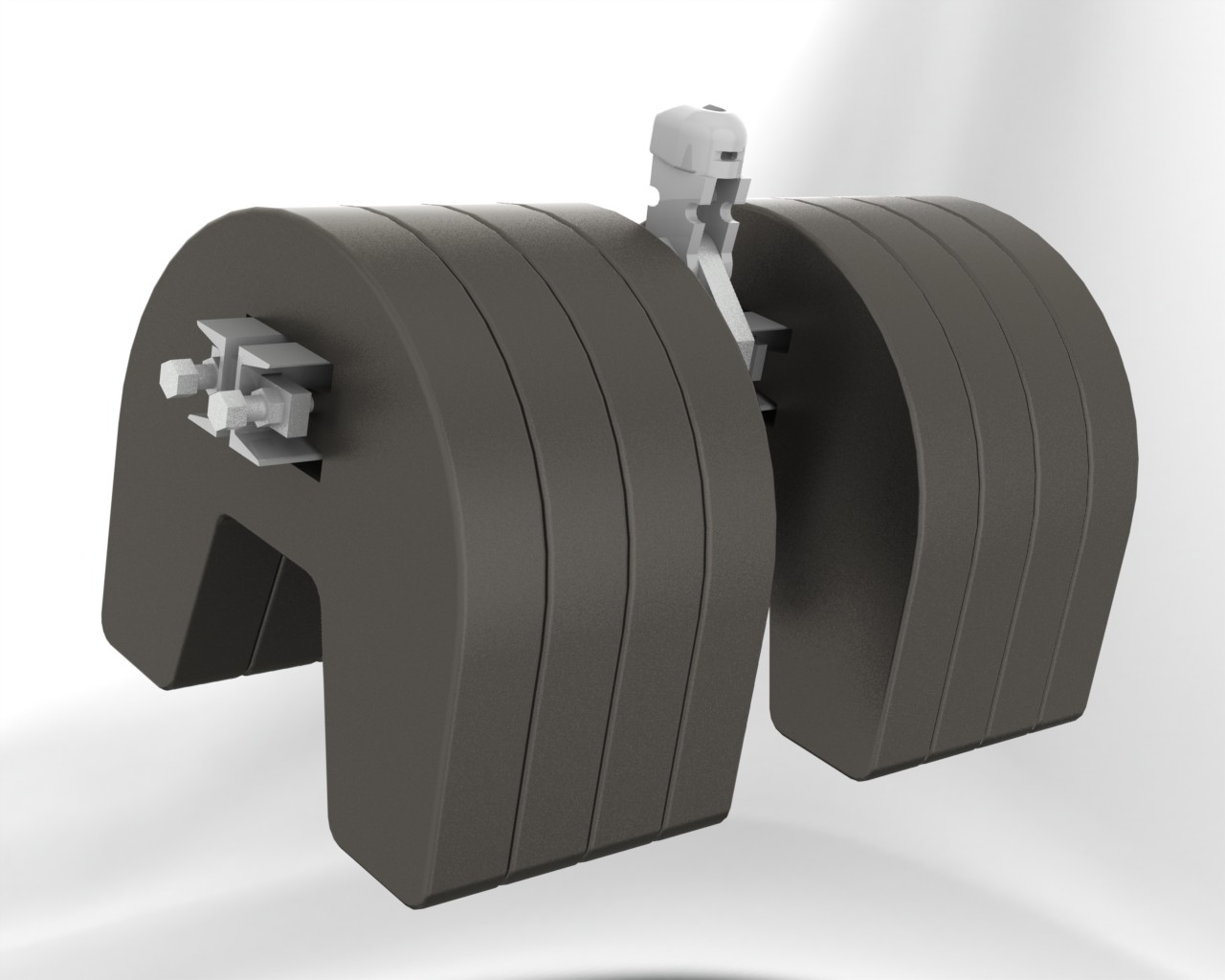 Рассчитаны на фиксацию одного провода. Конструктивно представляют собой грузы, которые крепятся к траверсам опор через зажимы, увеличивая их массу и устойчивость. Совместимы с большинством стандартных зажимов, крепятся болтовыми соединениями и снижают риск усталостного разрушения конструкции.