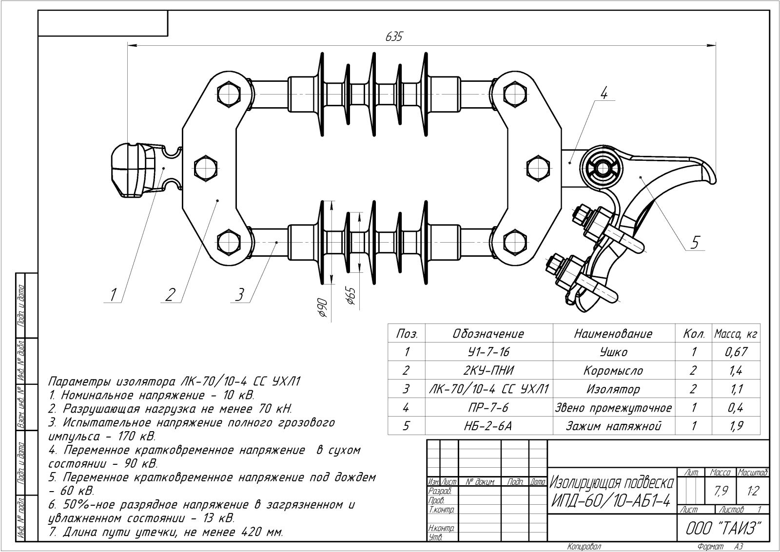 ИПД – изолирующая подвеска двухцепная с общим креплением цепей к опоре;