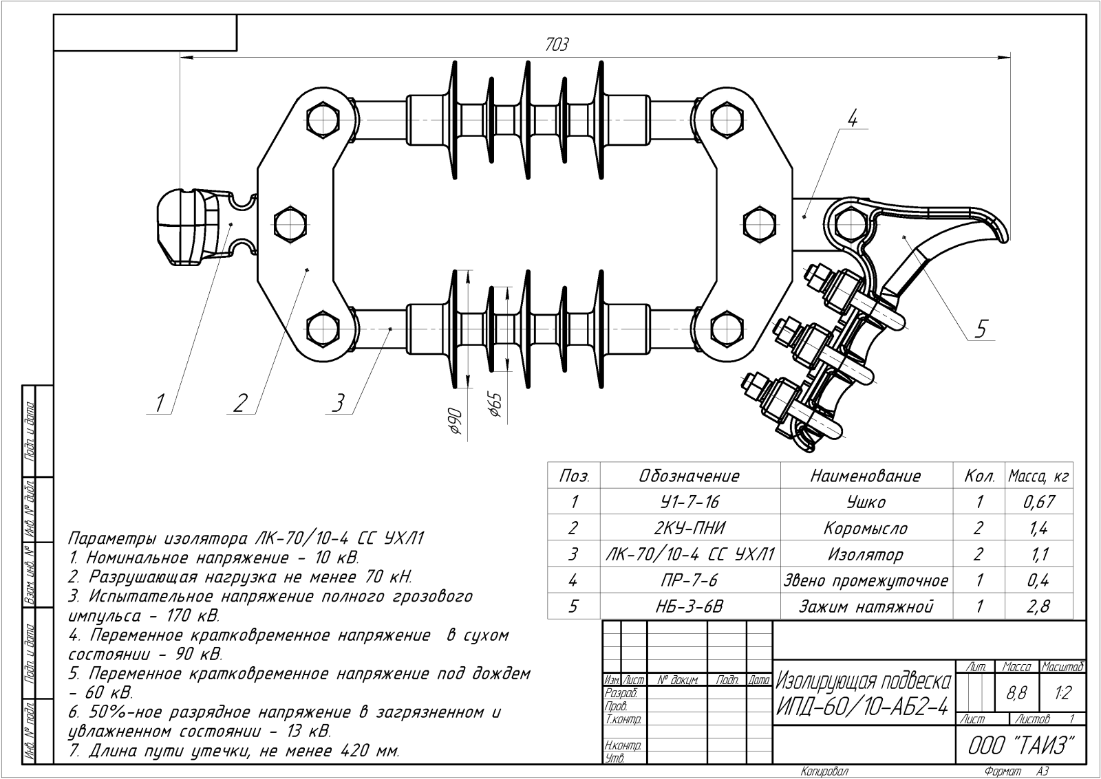 ИПД – изолирующая подвеска двухцепная с общим креплением цепей к опоре;