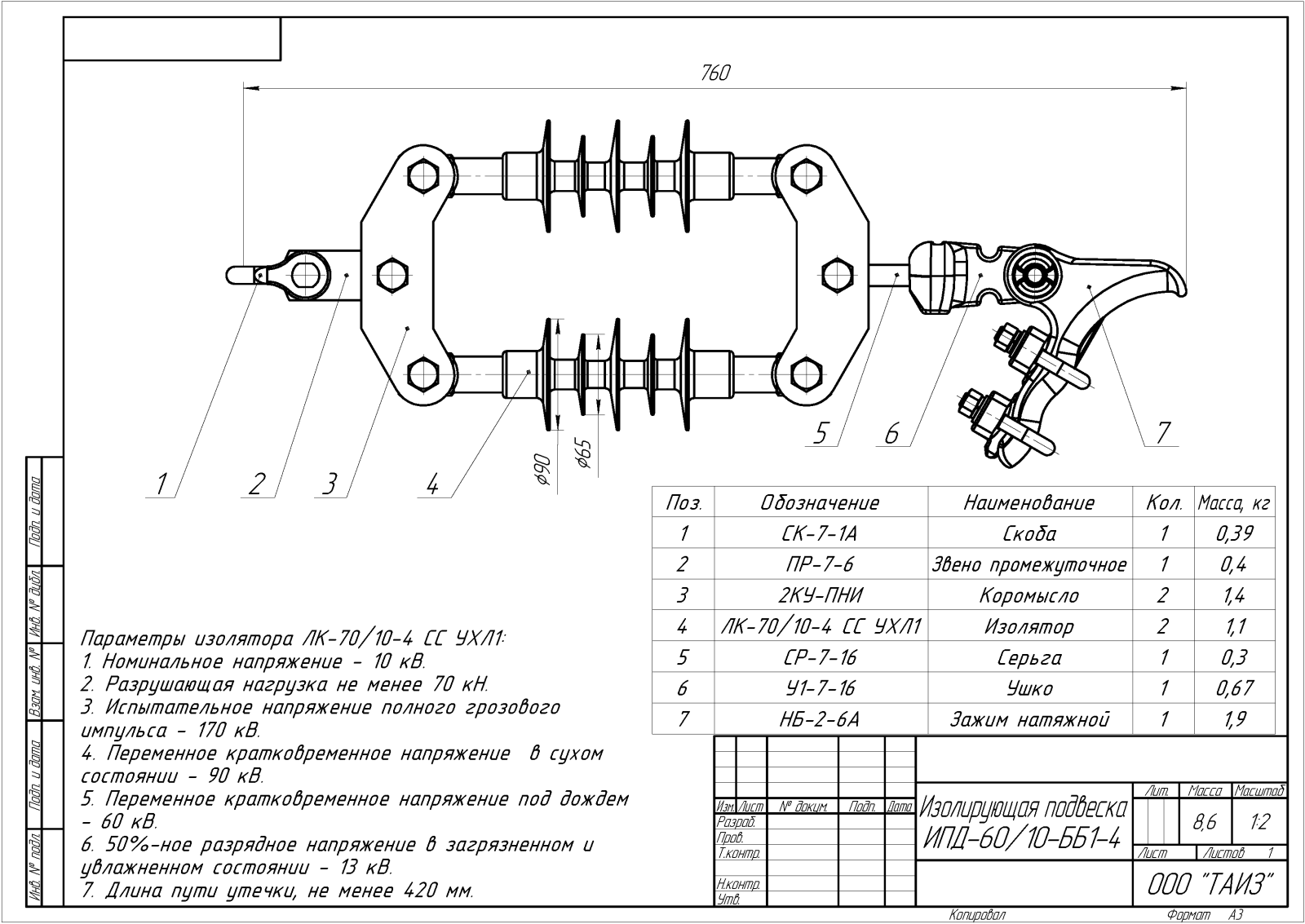 ИПД – изолирующая подвеска двухцепная с общим креплением цепей к опоре;