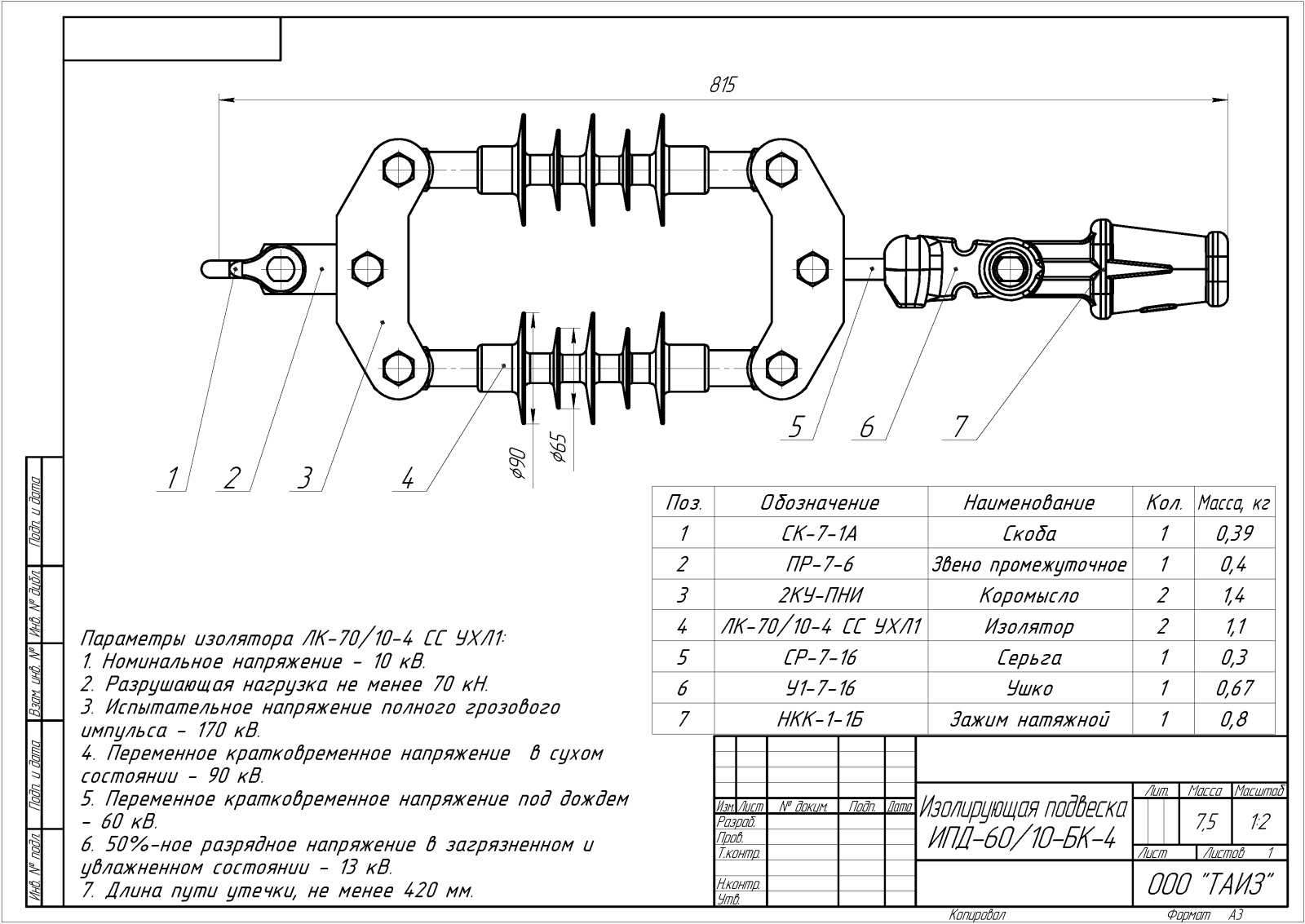 ИПД – изолирующая подвеска двухцепная с общим креплением цепей к опоре;