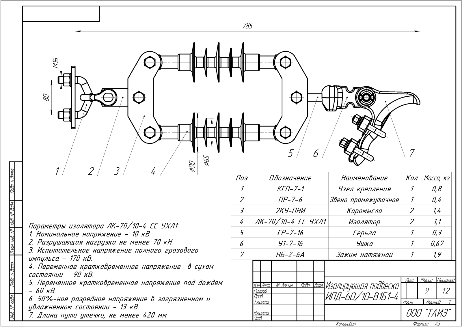 ИПД – изолирующая подвеска двухцепная с общим креплением цепей к опоре;