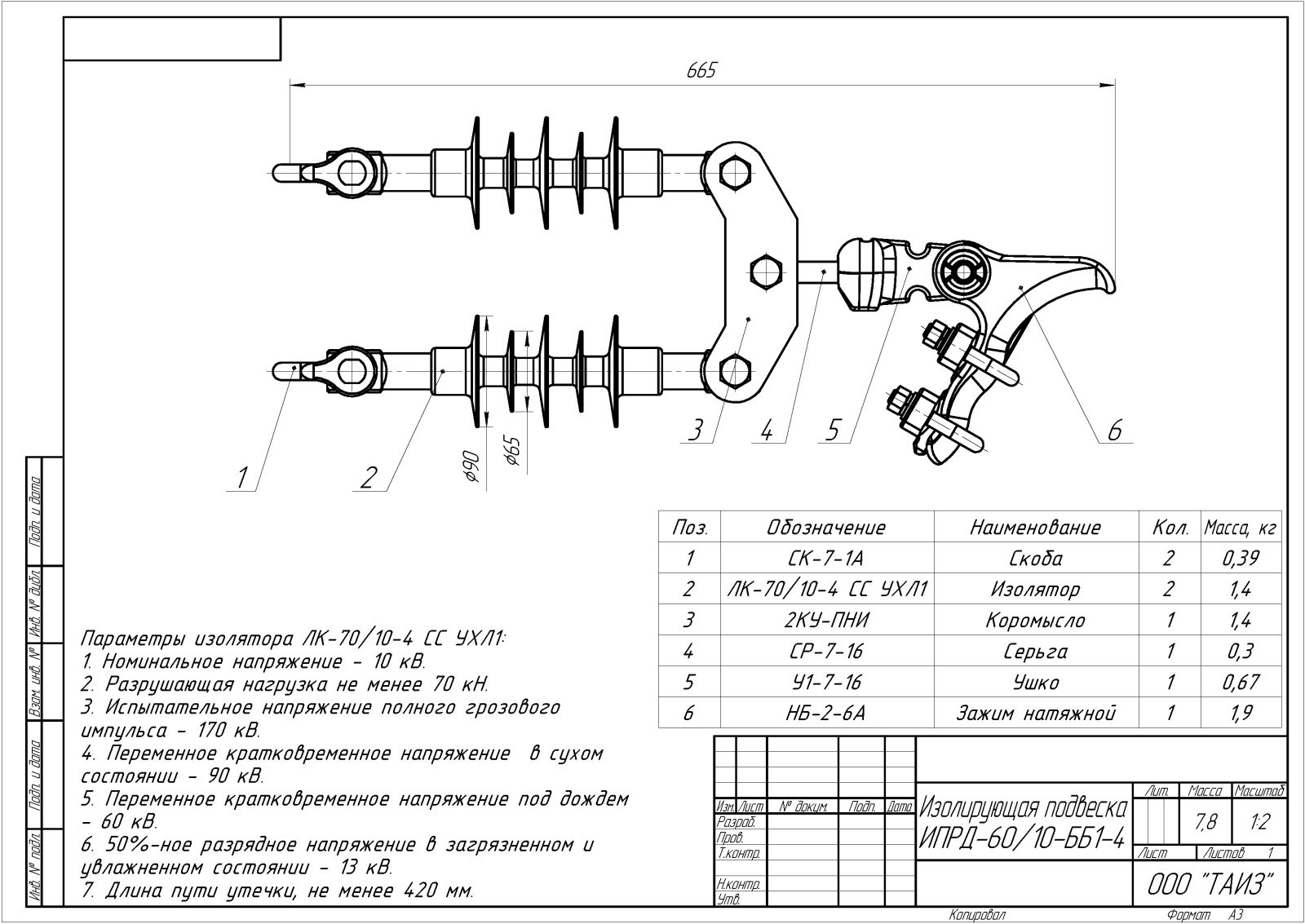 ИПД – изолирующая подвеска двухцепная с общим креплением цепей к опоре;