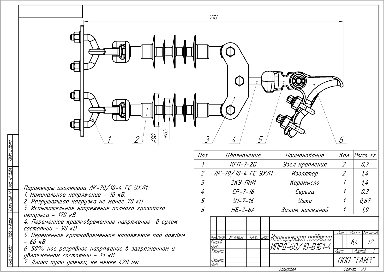ИПРД – изолирующая подвеска двухцепная с раздельным креплением цепей к опоре;