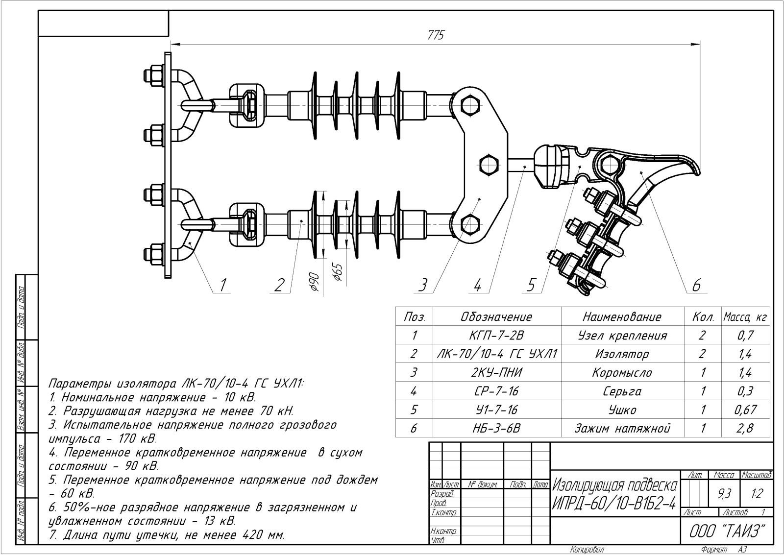ИПРД – изолирующая подвеска двухцепная с раздельным креплением цепей к опоре;