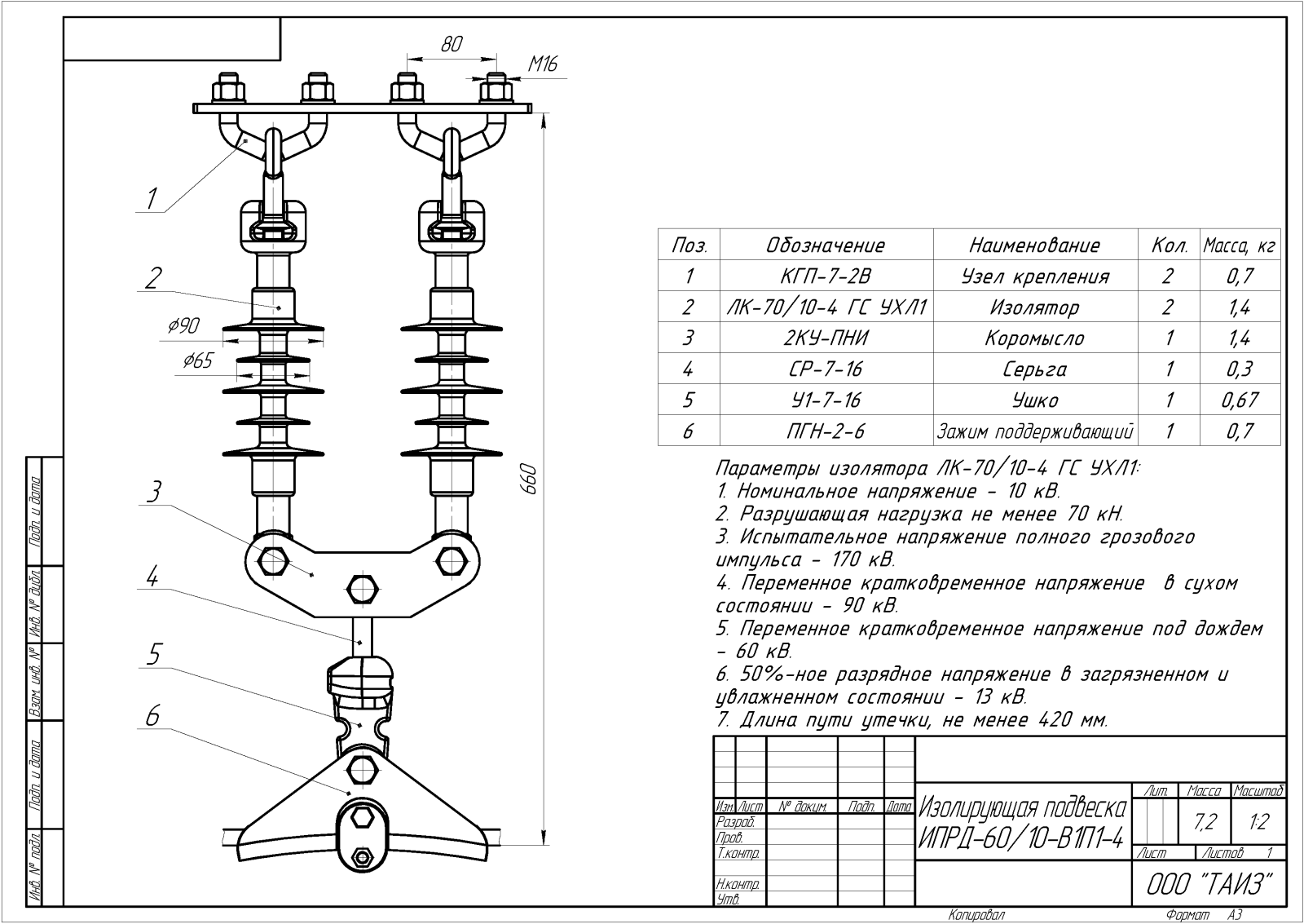 ИПД – изолирующая подвеска двухцепная с общим креплением цепей к опоре;