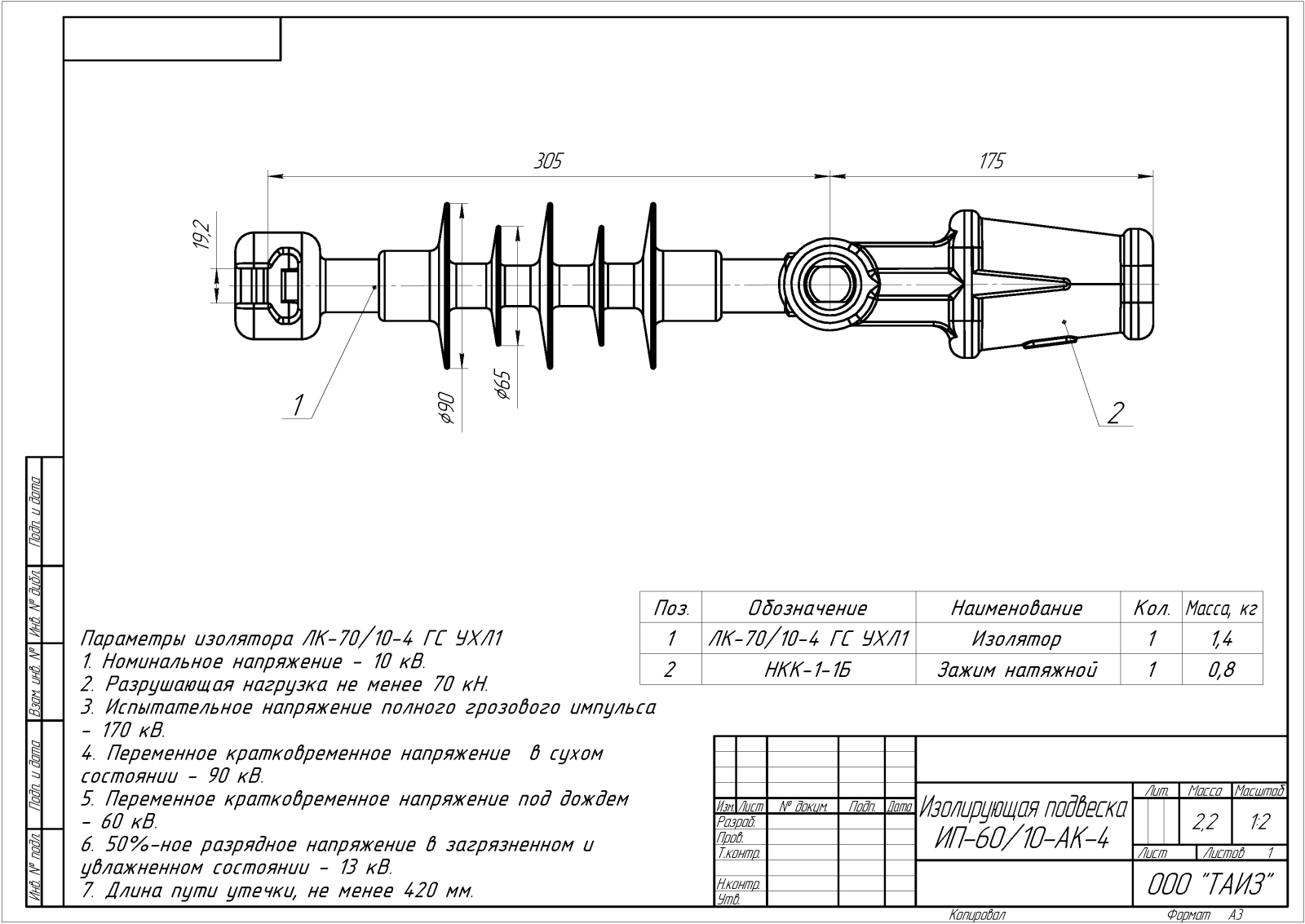 ИПРД – изолирующая подвеска двухцепная с раздельным креплением цепей к опоре;