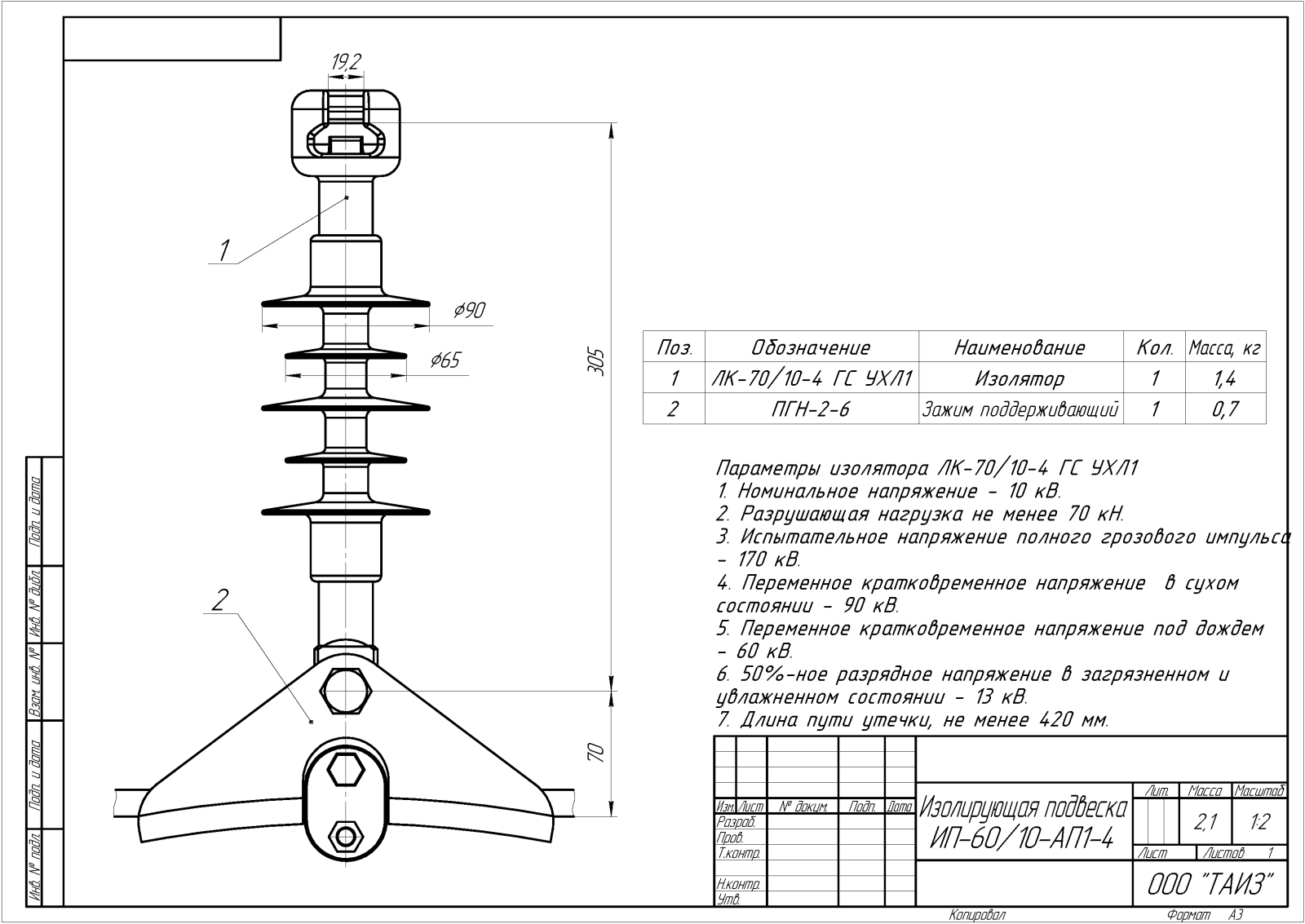 ИПРД – изолирующая подвеска двухцепная с раздельным креплением цепей к опоре;