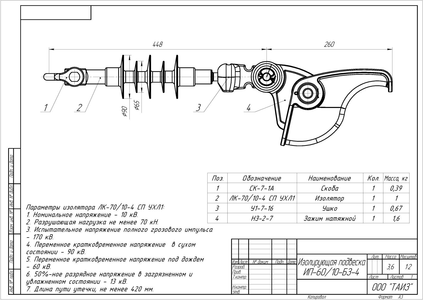 З – натяжной заклинивающийся зажим для проводов 11-17 мм;