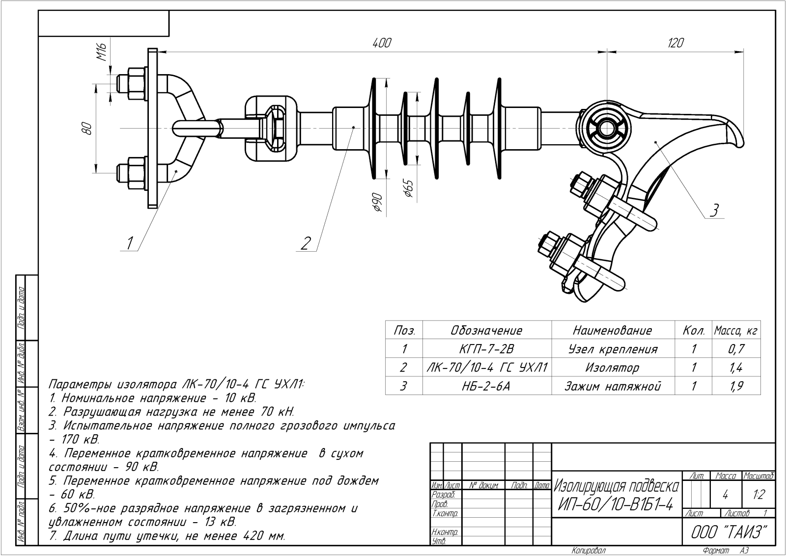 ИПД – изолирующая подвеска двухцепная с общим креплением цепей к опоре;