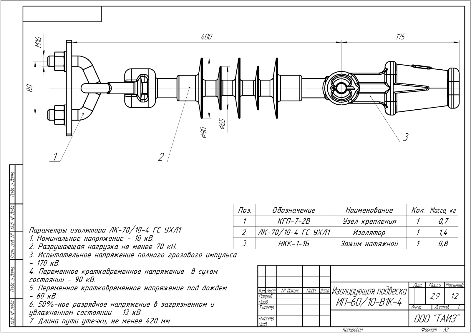 ИПРД – изолирующая подвеска двухцепная с раздельным креплением цепей к опоре;