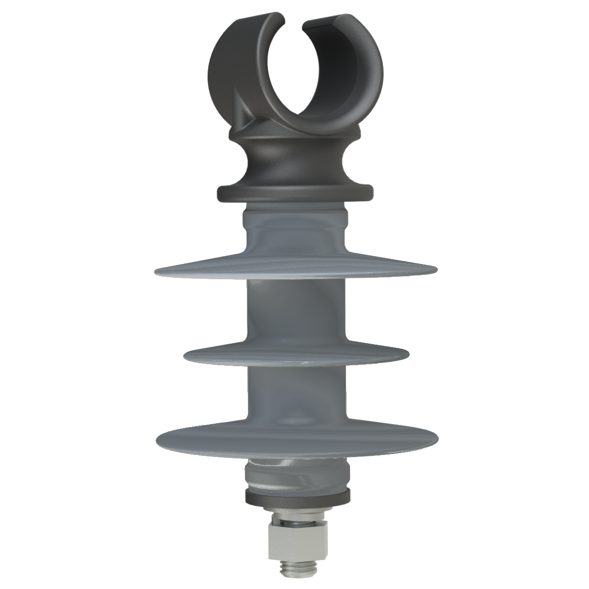 Предназначен для установки непосредственно на траверсу со сквозным отверстием при помощи резьбового штыря нижнего оконцевателя, шайб и гайки. Оконцеватели, как правило, изготавливаются с резьбой М20, М22, М24. Конструкция изолятора обеспечивает крепление неизолированных проводов по ГОСТ 839 и изолированных проводов СИП по ГОСТ Р 52373 различными способами – провод может быть закреплён в жёлобе или на шейке изолятора при помощи спиральных вязок.