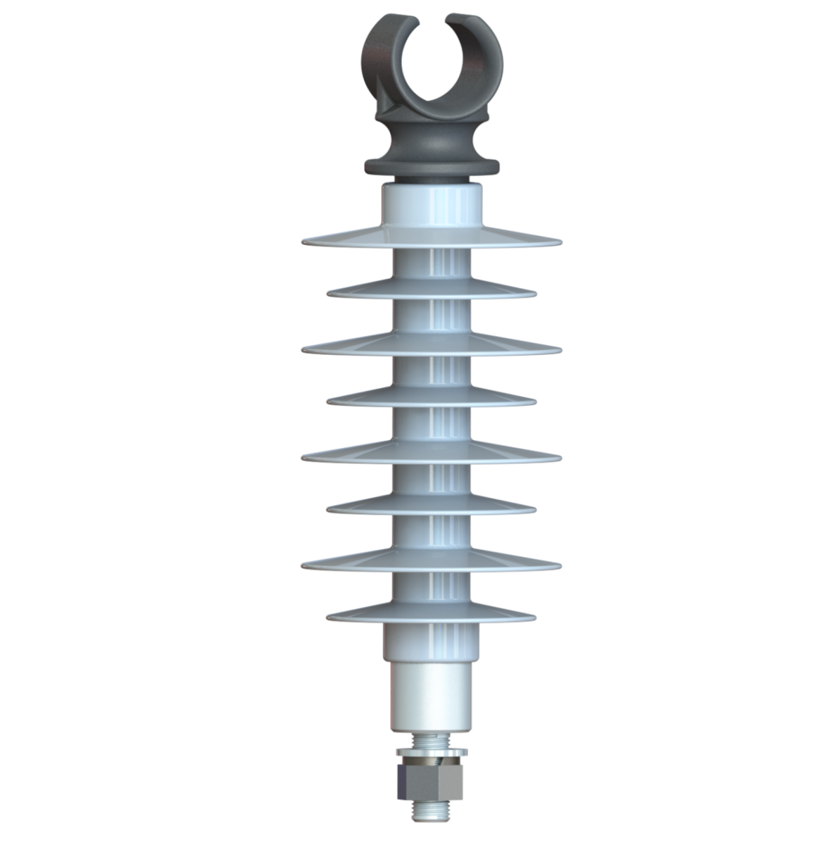 Предназначен для установки непосредственно на цилиндрический штырь при помощи нижнего оконцевателя и фиксируется установочными винтами. Конструкция изолятора обеспечивает крепление неизолированных проводов по ГОСТ 839 и изолированных проводов СИП по ГОСТ Р 52373 различными способами – провод может быть закреплён в жёлобе или на шейке изолятора при помощи спиральных вязок. Крышка из алюминиевого сплава препятствует соскальзыванию провода при установке в жёлобе, а также может обеспечивать глухое крепление в диапазоне Ø19...30 мм. При повороте ЛЭП провод закрепляется на шейке изолятора.