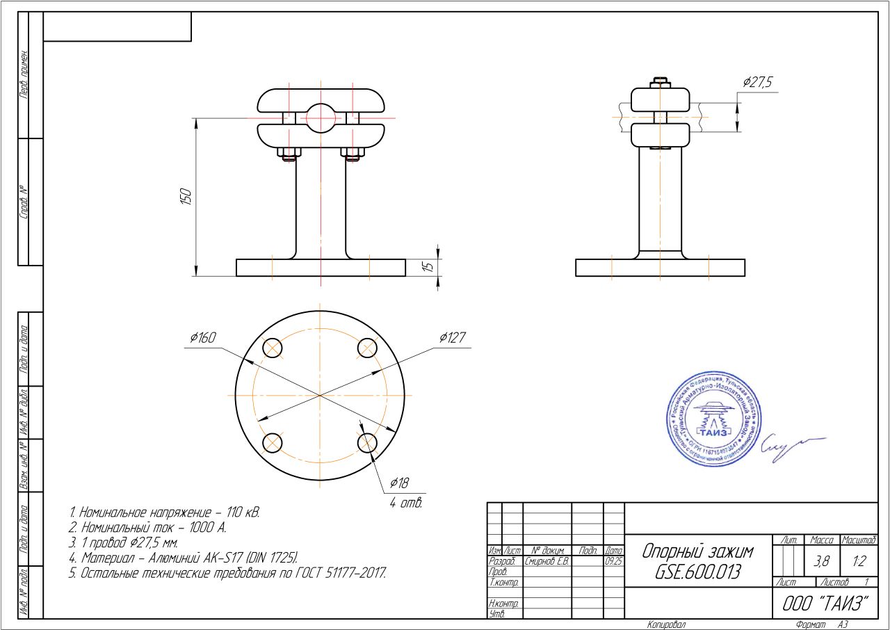 Главная » Продукция » Подстанционная арматура » Зажимы типа GSE » Опорный зажим GSE.600.013