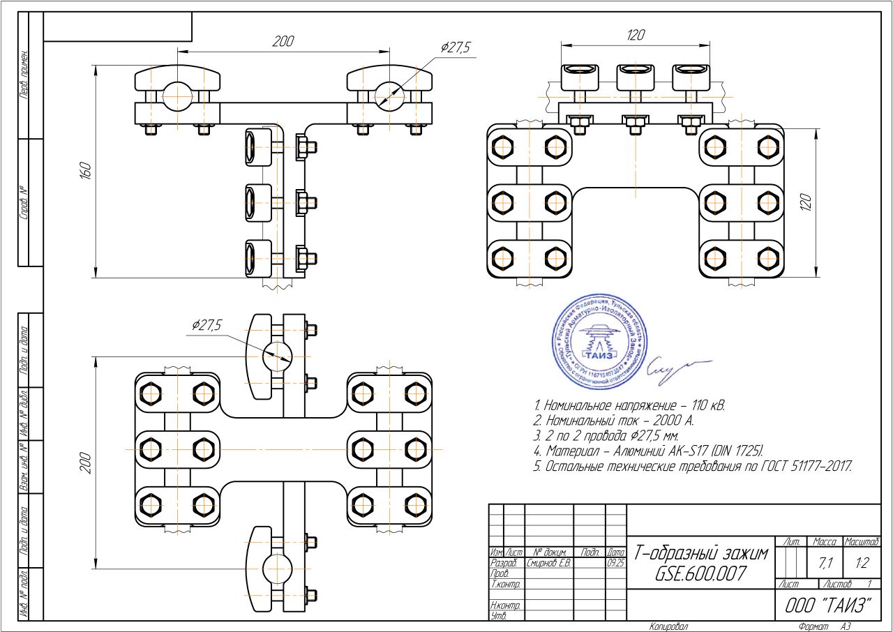 Главная » Продукция » Подстанционная арматура » Зажимы типа GSE » Т-образный зажим GSE.600.007