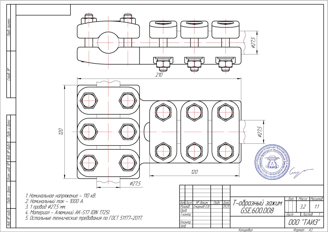 Главная » Продукция » Подстанционная арматура » Зажимы типа GSE » Т-образный зажим GSE.600.008