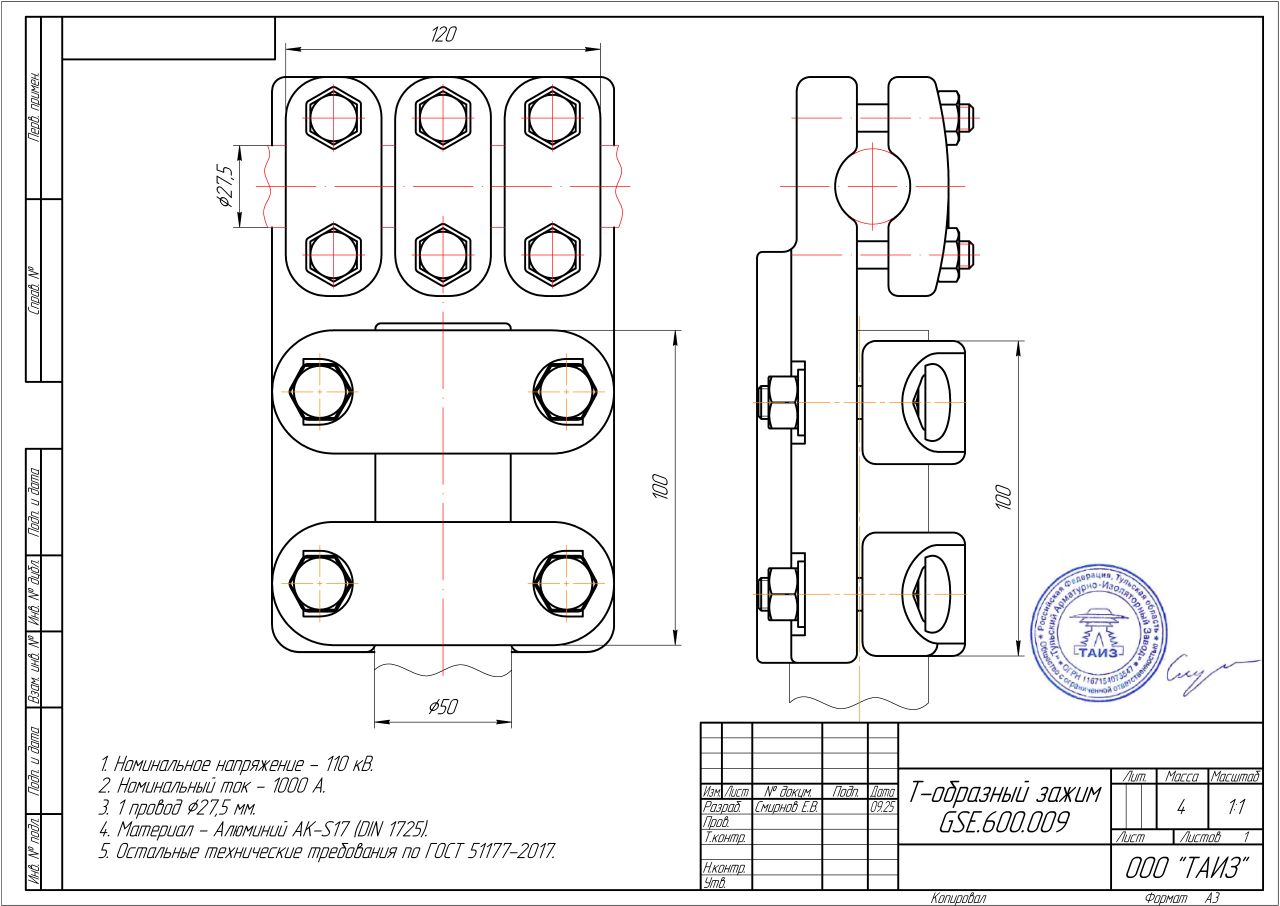Главная » Продукция » Подстанционная арматура » Зажимы типа GSE » Т-образный зажим GSE.600.009