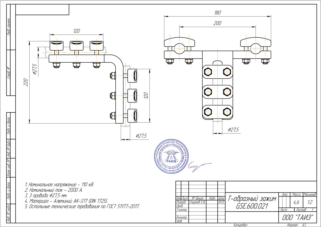 Главная » Продукция » Подстанционная арматура » Зажимы типа GSE » Т-образный зажим GSE.600.021