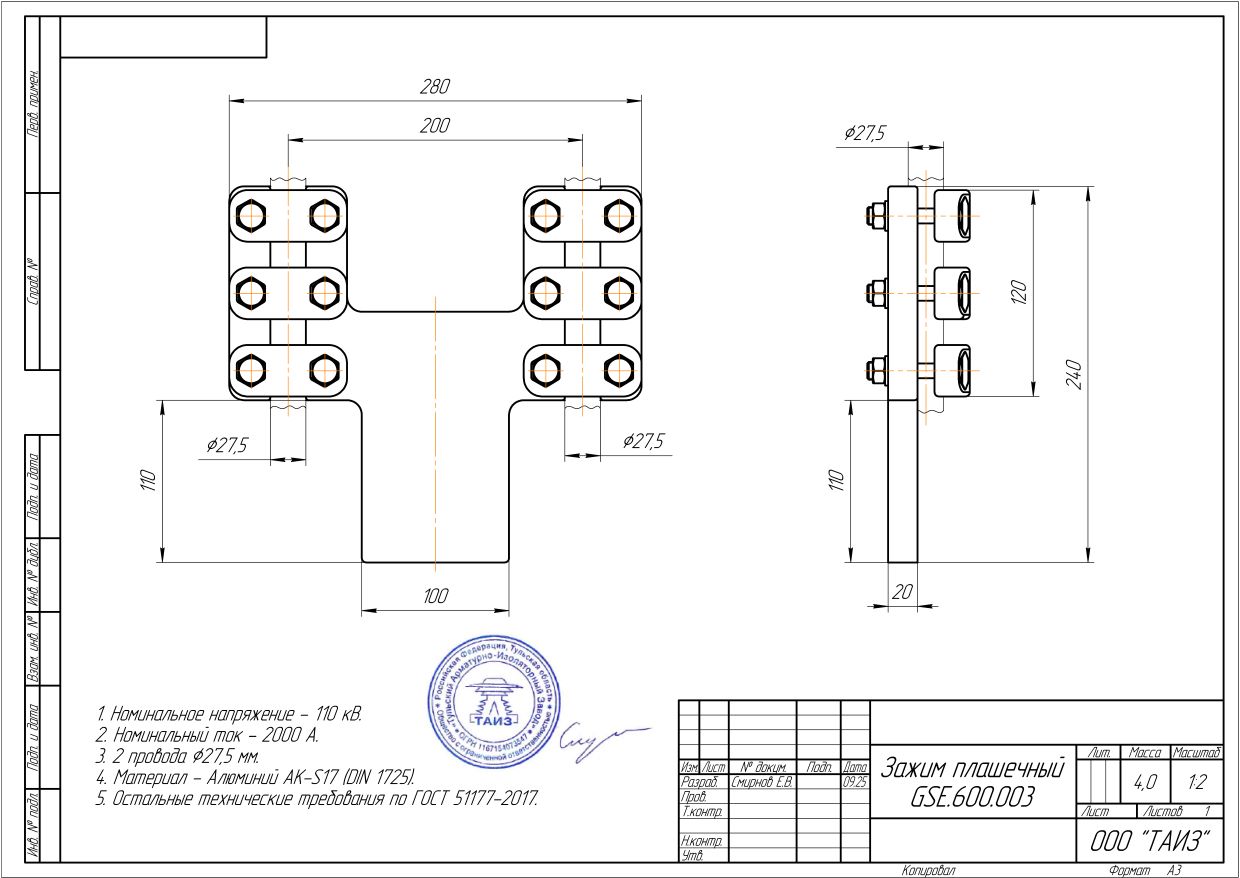 Главная » Продукция » Подстанционная арматура » Зажимы типа GSE » Зажим плашечный GSE.600.003