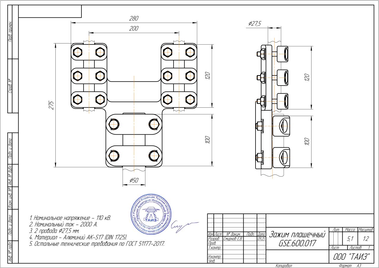 Главная » Продукция » Подстанционная арматура » Зажимы типа GSE » Зажим плашечный GSE.600.017