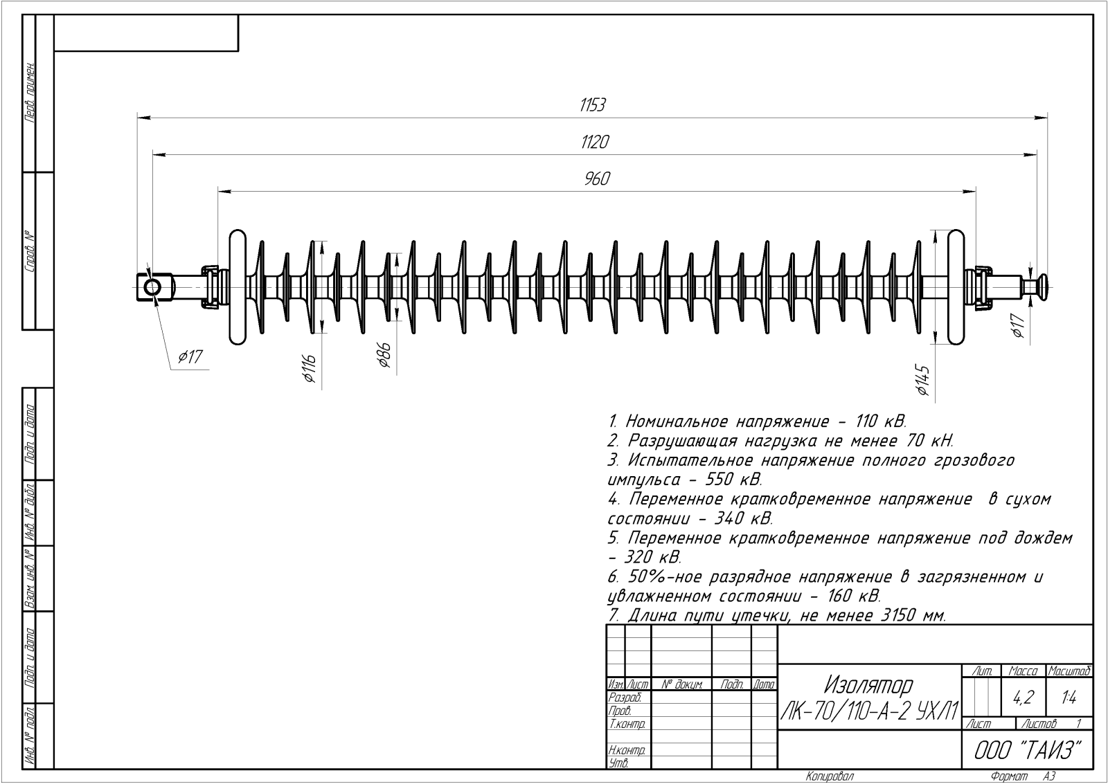 Подвесной изолятор ЛК 70/110-А-2 УХЛ1