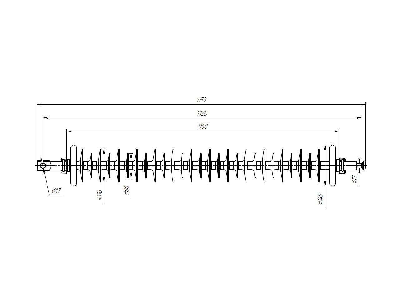 Высокопрочный стеклопластиковый стержень, гидрофобная, трекингостойкая кремнийорганическая оболочка;