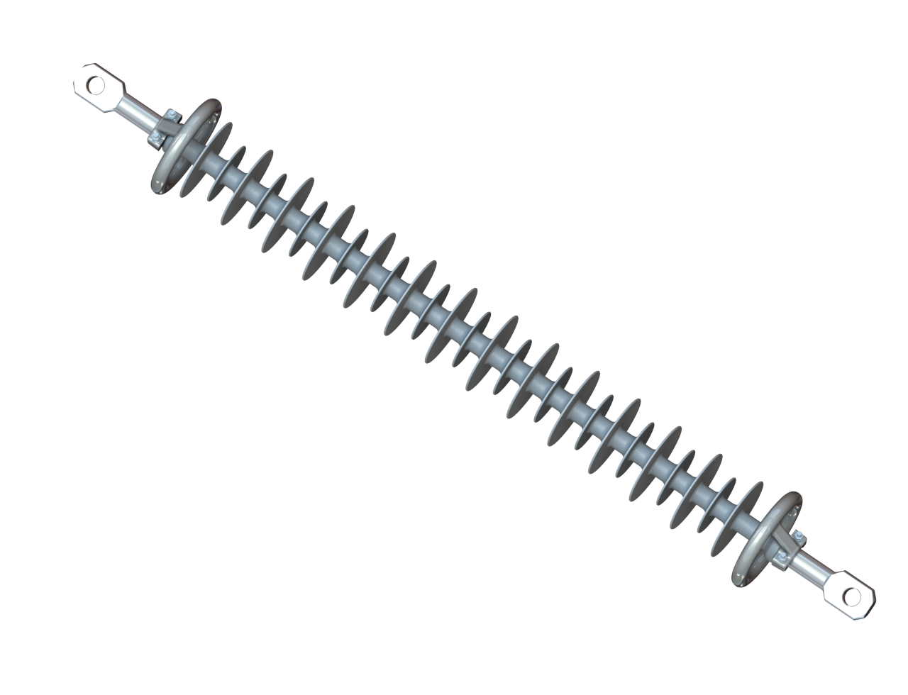 Для данных изоляторов характерна высокая стойкость к воздействию атмосферных и промышленных загрязнений, кислот и щелочей, ультрафиолетовому облучению, трекингу, электрической эрозии. Крепление оконцевателя изолятора со стеклопластиковым стержнем осуществляется путем радиального обжатия в многокулачковой машине.