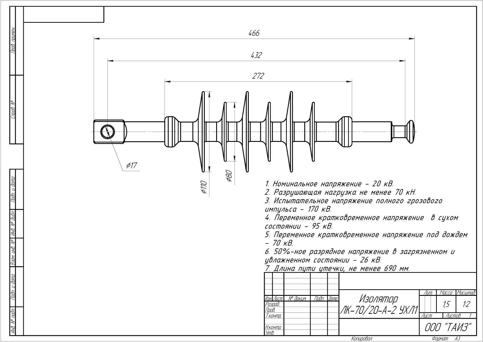 КОНСТРУКТИВНЫЕ ОСОБЕННОСТИ ИЗОЛЯТОРА ОБЪЕМ ПРИЕМОСДАТОЧНЫХ ИСПЫТАНИЙ