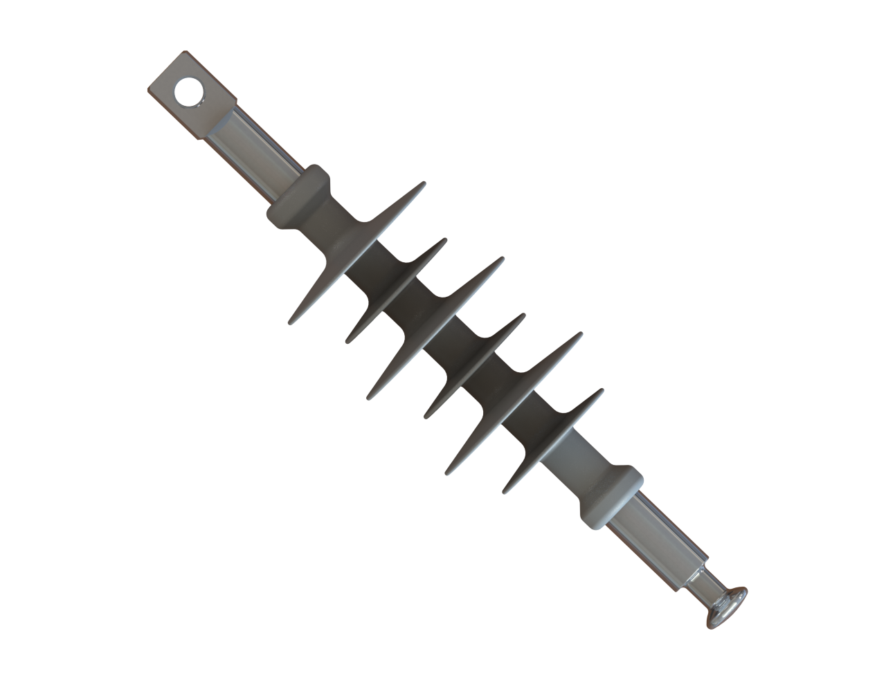 Для данных изоляторов характерна высокая стойкость к воздействию атмосферных и промышленных загрязнений, кислот и щелочей, ультрафиолетовому облучению, трекингу, электрической эрозии. Крепление оконцевателя изолятора со стеклопластиковым стержнем осуществляется путем радиального обжатия в многокулачковой машине.