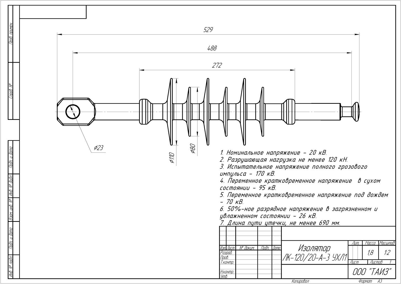 Масса, длина изоляционной части, присоединительные размеры, соответствие, расположения арматуры;