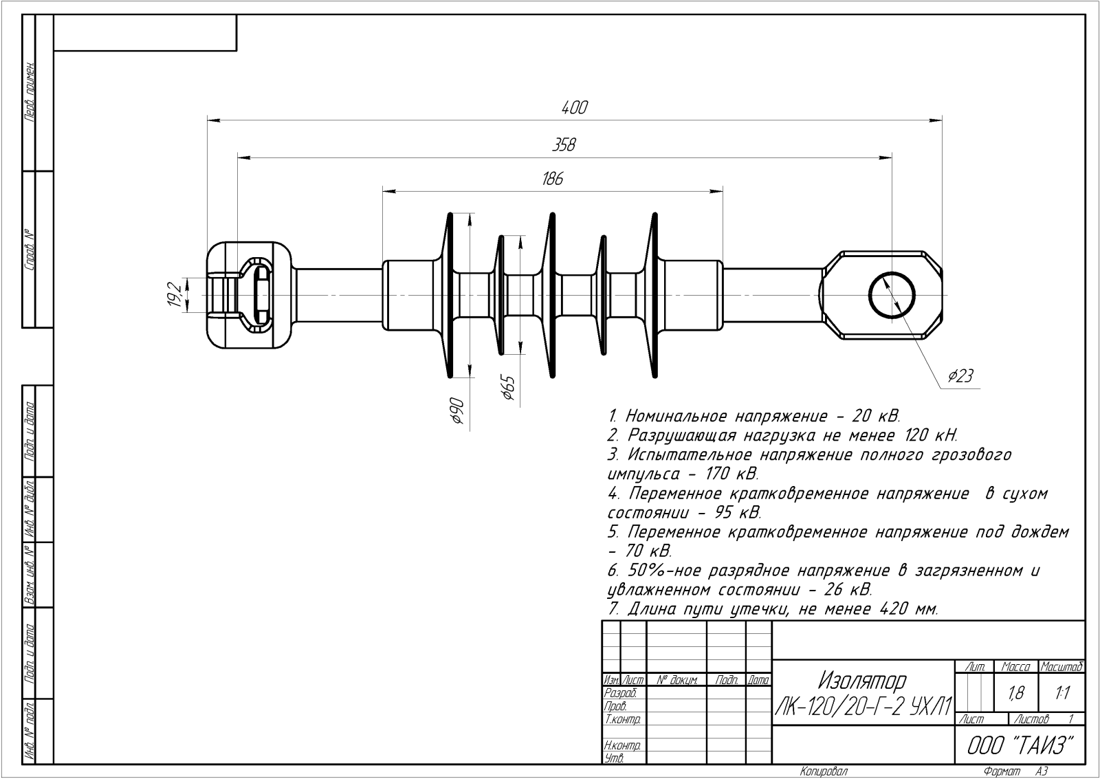 Масса, длина изоляционной части, присоединительные размеры, соответствие, расположения арматуры;