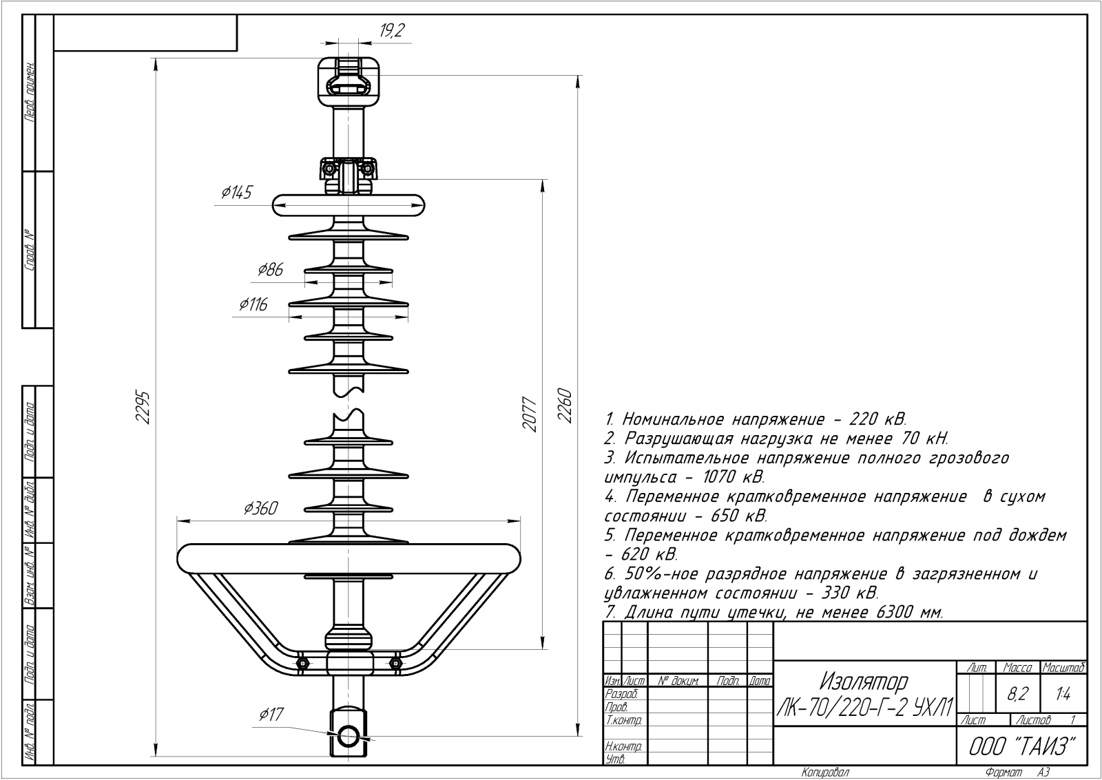 Масса, длина изоляционной части, присоединительные размеры, соответствие, расположения арматуры;