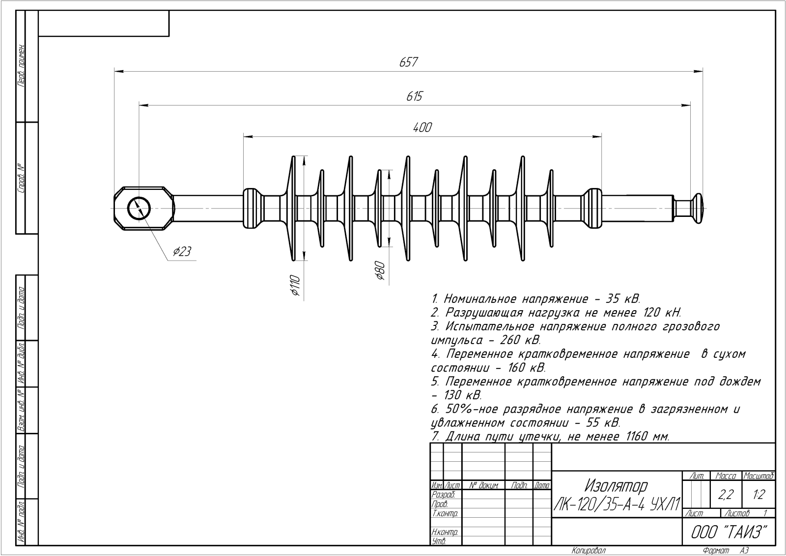 Масса, длина изоляционной части, присоединительные размеры, соответствие, расположения арматуры;