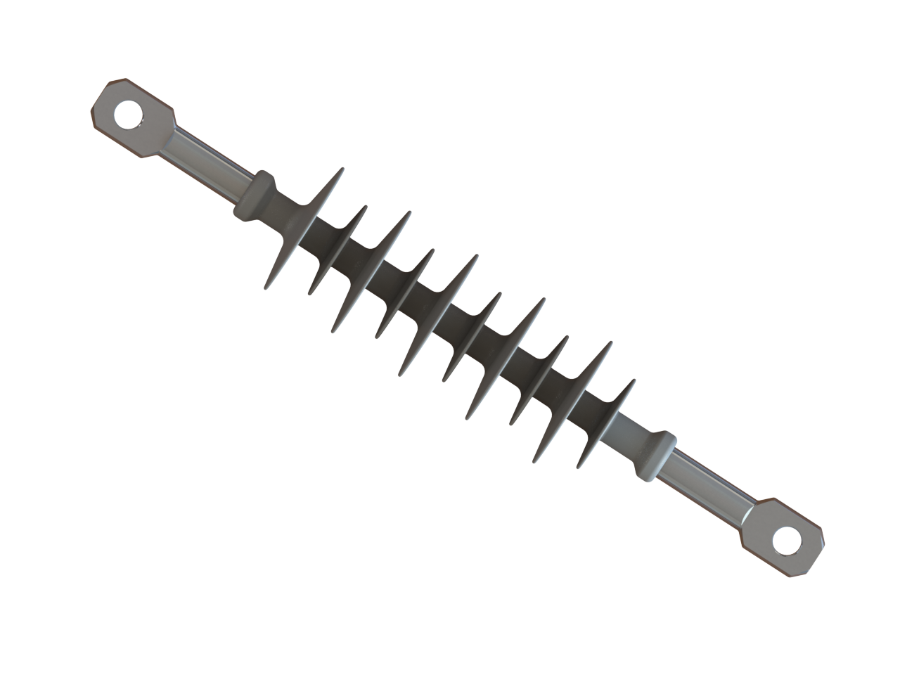 Для данных изоляторов характерна высокая стойкость к воздействию атмосферных и промышленных загрязнений, кислот и щелочей, ультрафиолетовому облучению, трекингу, электрической эрозии. Крепление оконцевателя изолятора со стеклопластиковым стержнем осуществляется путем радиального обжатия в многокулачковой машине.