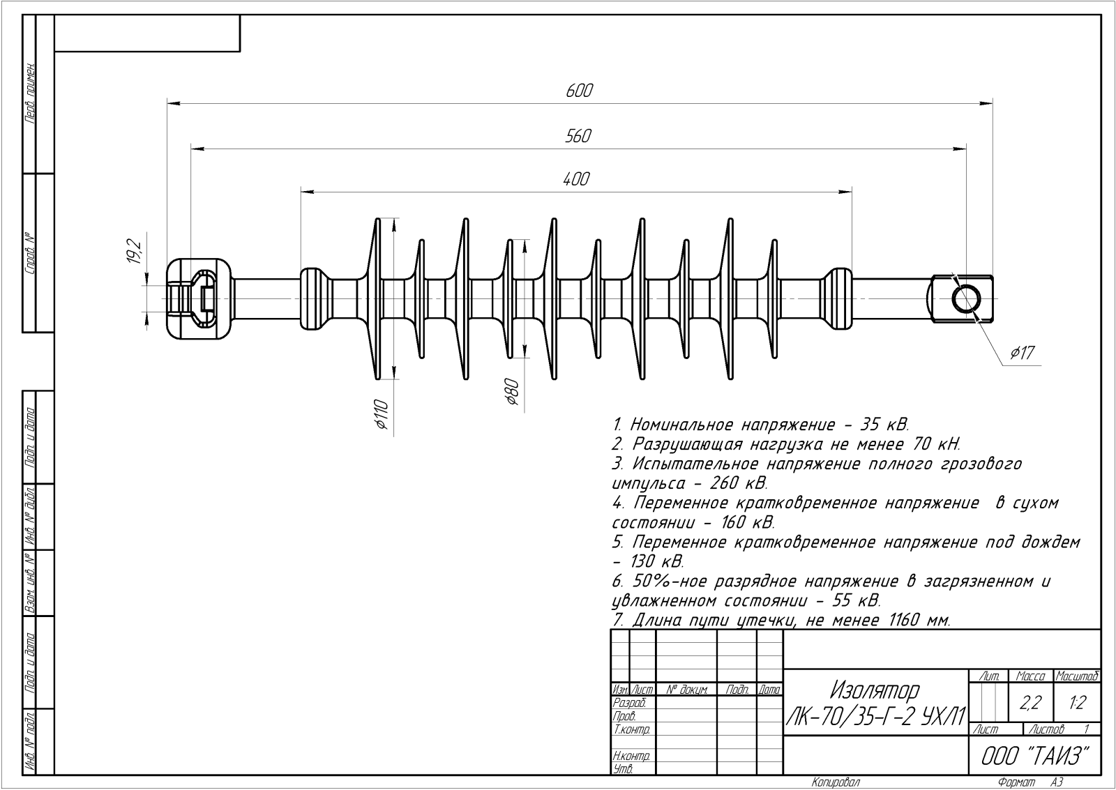 Подвесной изолятор ЛК 70/35-Г-2 УХЛ1