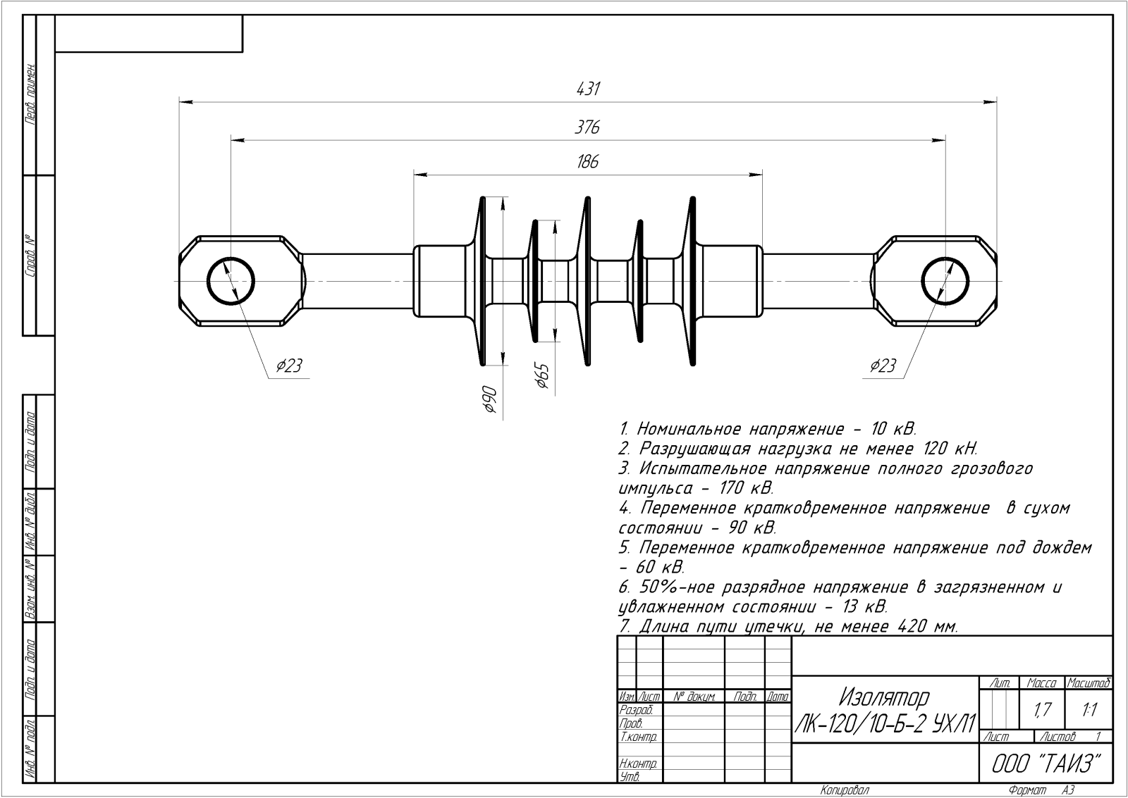 Масса, длина изоляционной части, присоединительные размеры, соответствие, расположения арматуры;