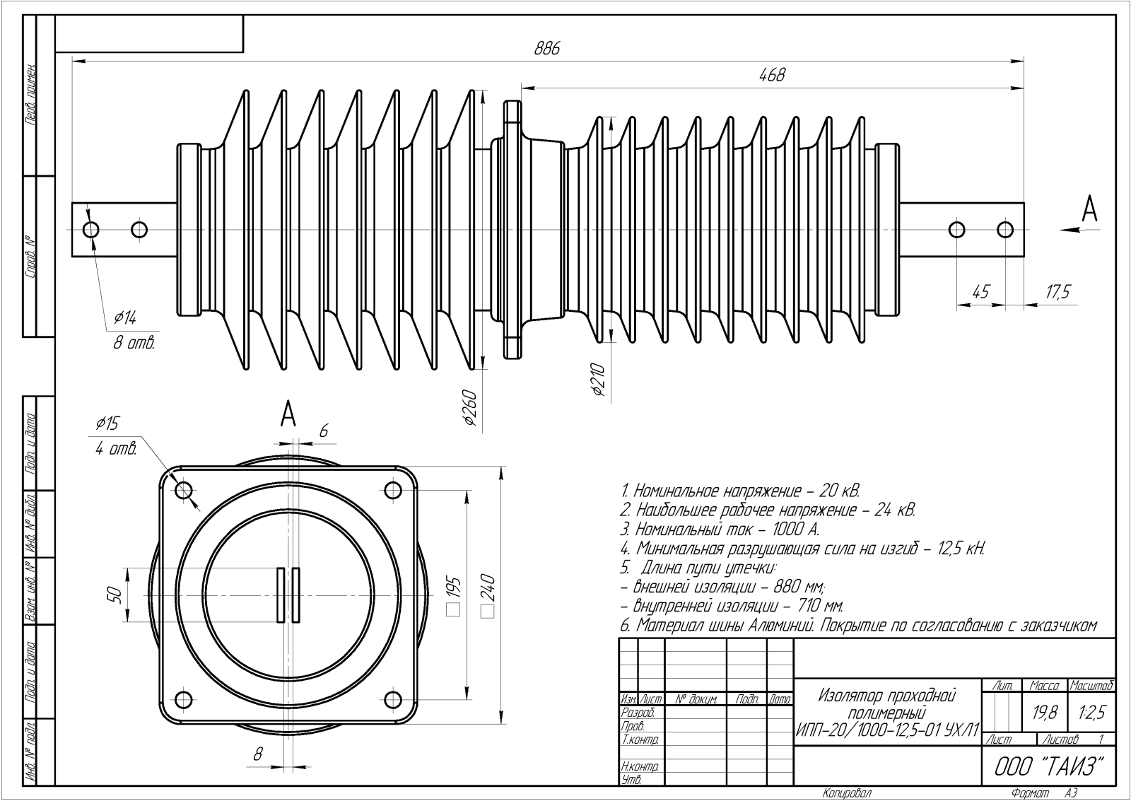 Изолятор проходной полимерный ИПП-20/1000-12,5-01 УХЛ1
