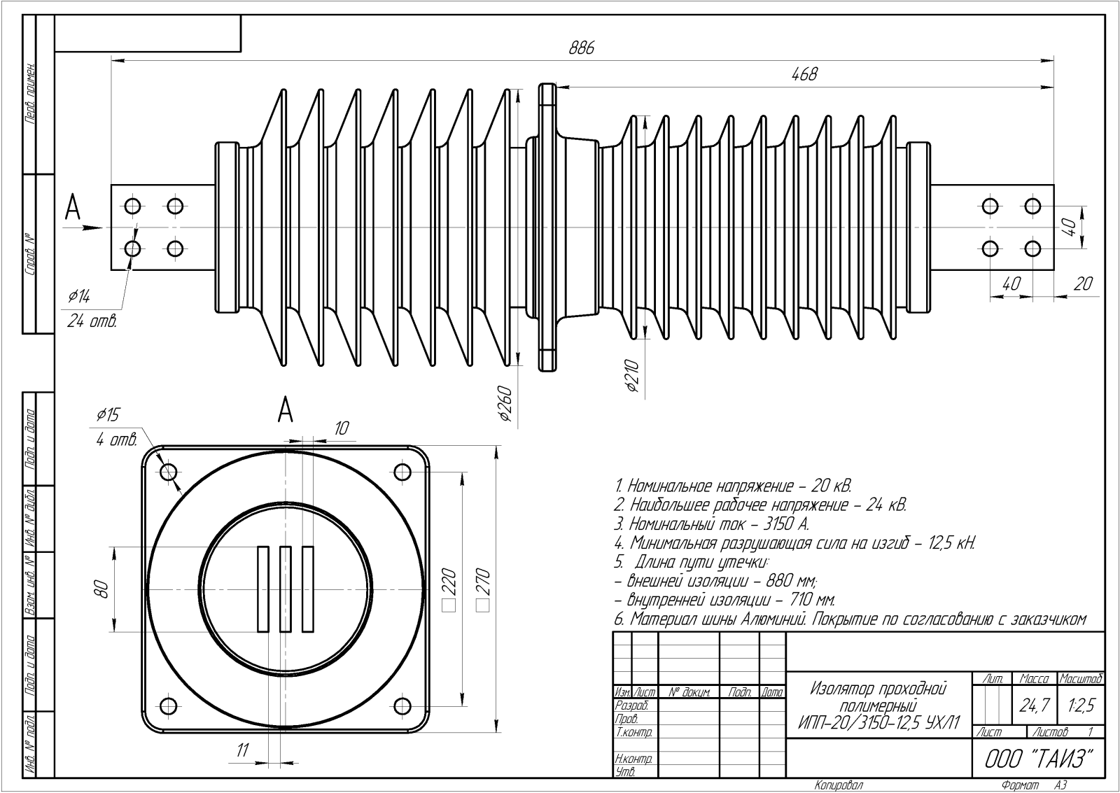 Изолятор проходной полимерный ИПП-20/3150-12,5 УХЛ1