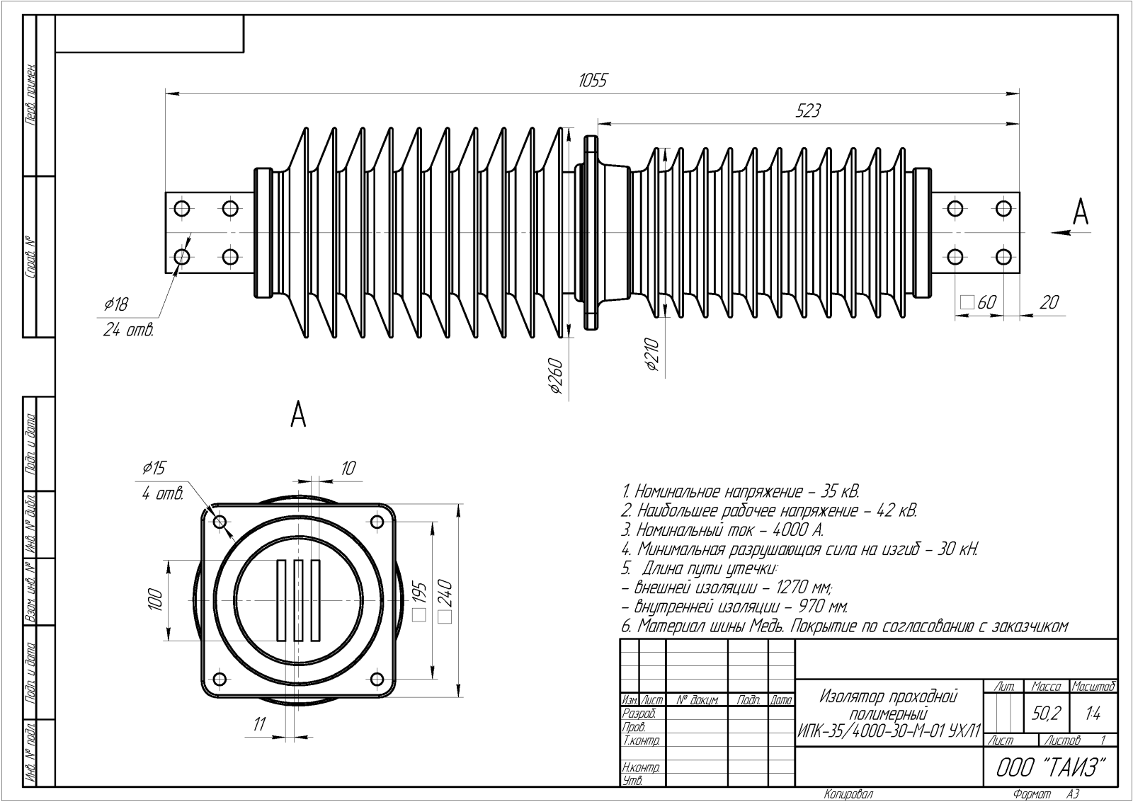 Изолятор проходной полимерный ИПК-35/4000-30-М-01 УХЛ1