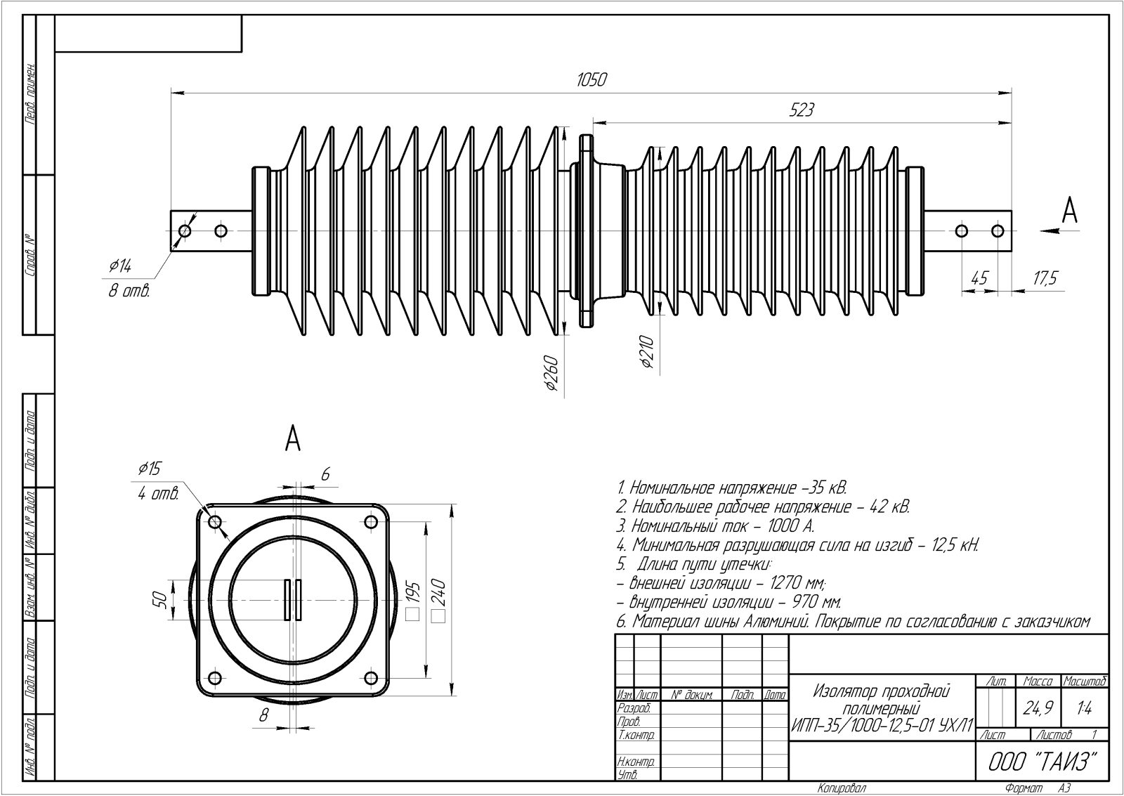 Изолятор проходной полимерный ИПП-35/1000-12,5-01 УХЛ1
