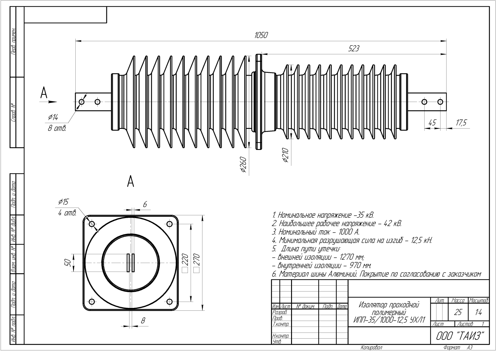 Изолятор проходной полимерный ИПП-35/1000-12,5 УХЛ1