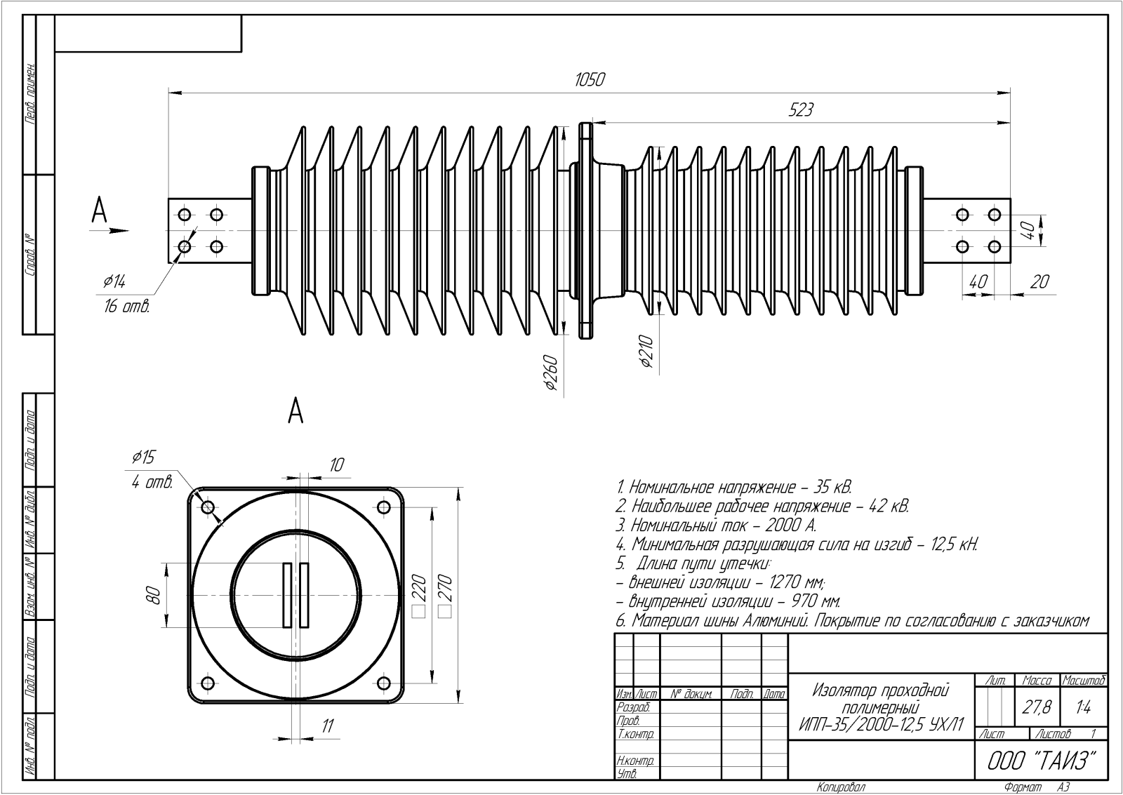 Изолятор проходной полимерный ИПП-35/2000-12,5 УХЛ1