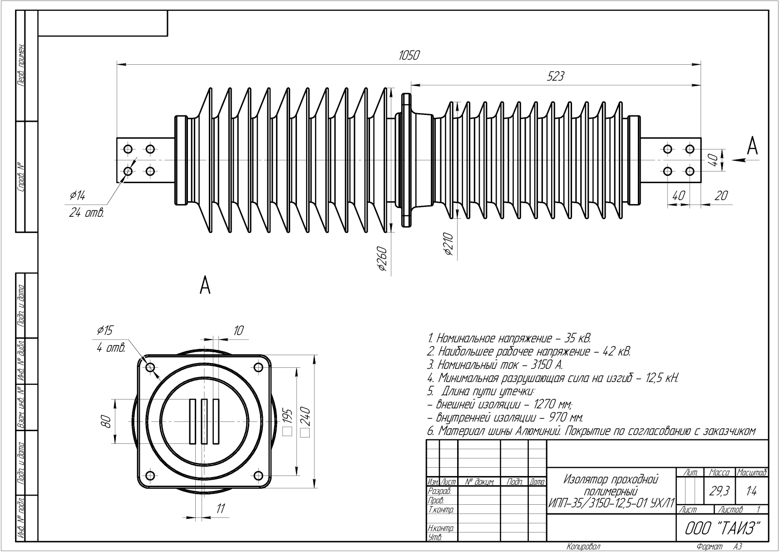 Изолятор проходной полимерный ИПП-35/3150-12,5-01 УХЛ1