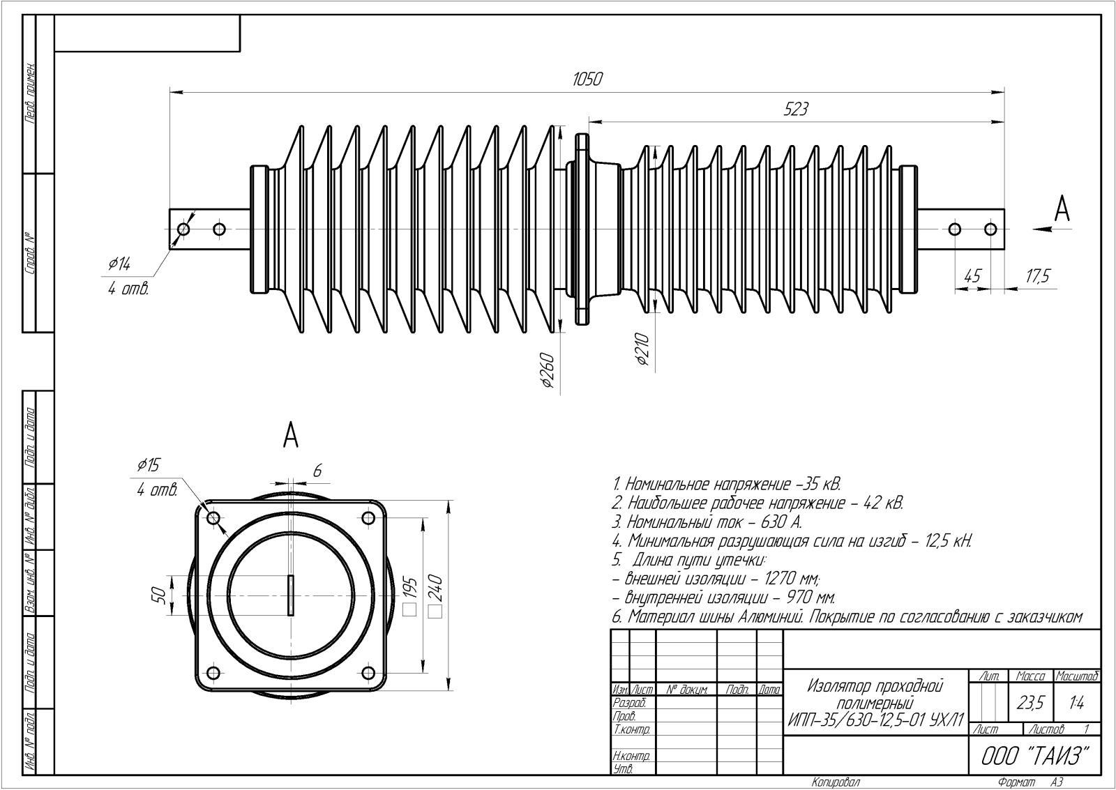 Изолятор проходной полимерный ИПП-35/630-12,5-01 УХЛ1