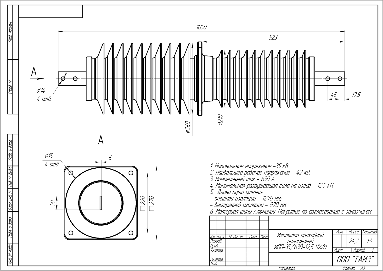 Изолятор проходной полимерный ИПП-35/630-12,5 УХЛ1