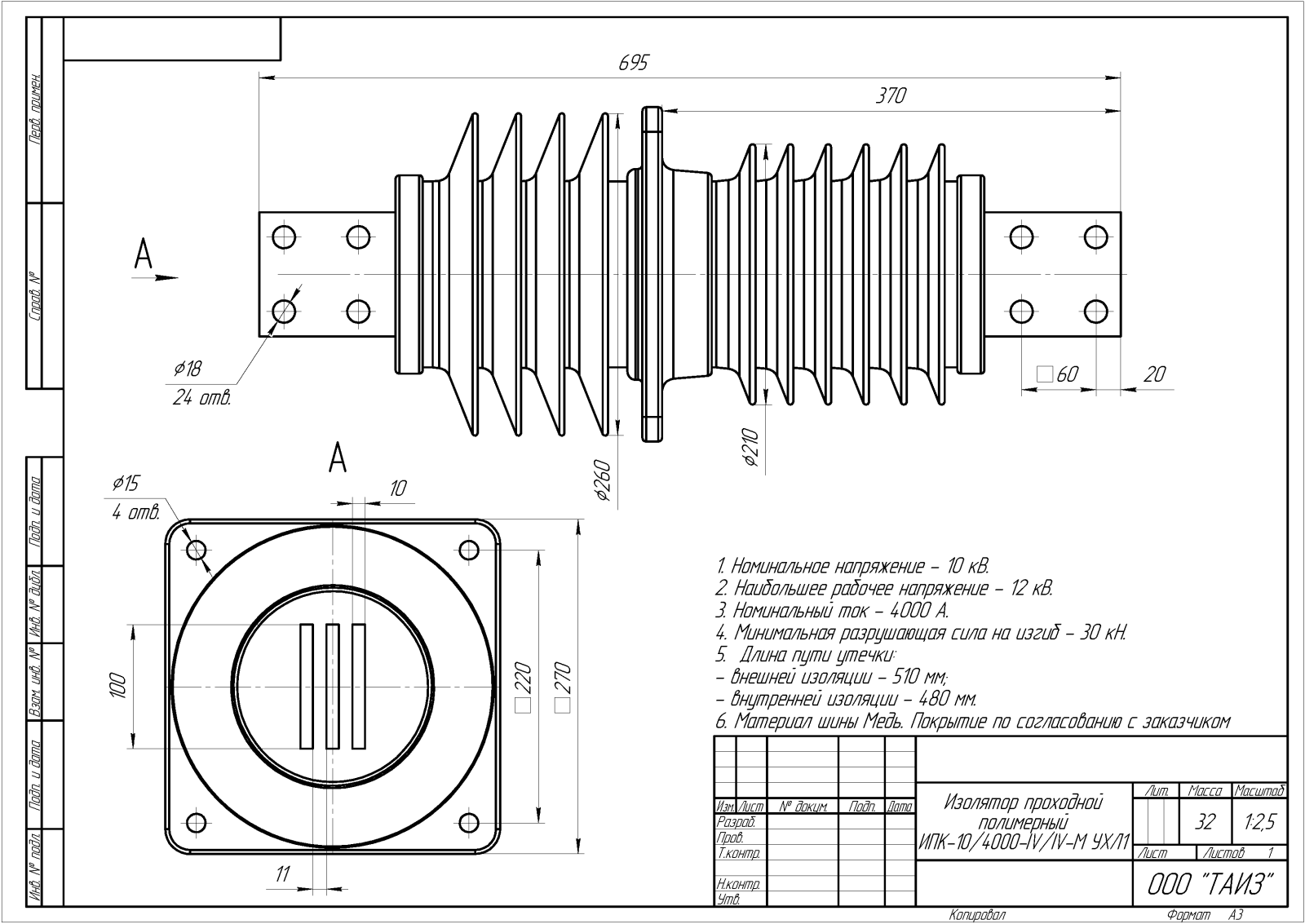 Изолятор проходной полимерный ИПК-10/4000-IV/IV-М УХЛ1