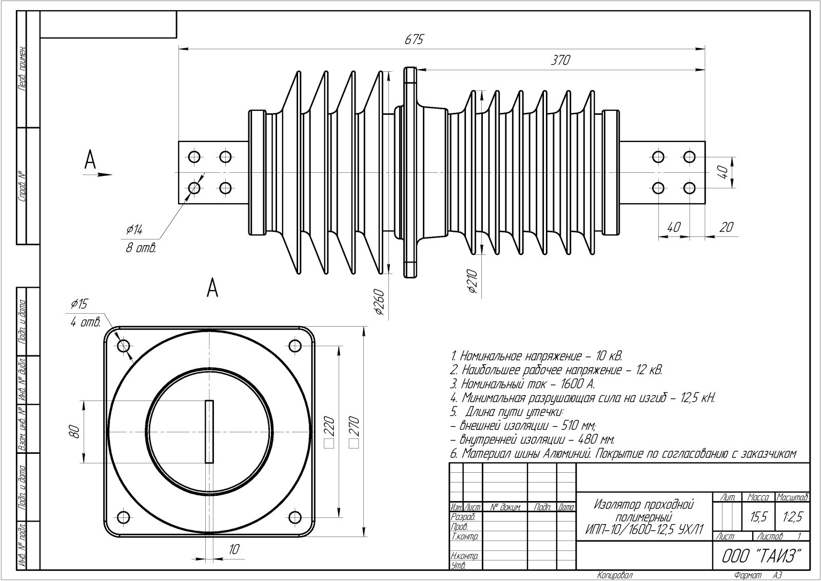 Изолятор проходной полимерный ИПП-10/1600-12,5 УХЛ1