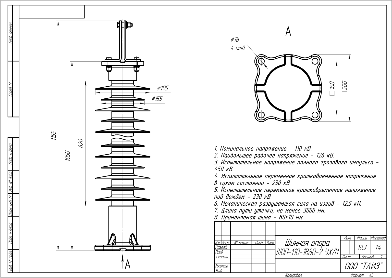 Главная » Продукция » Шинные опоры » Шинные опоры для жесткой ошиновки с вертикальными плоскими шинами » Шинные опоры для жесткой ошиновки 110 кВ » ШОП-110-1В80-2 УХЛ1