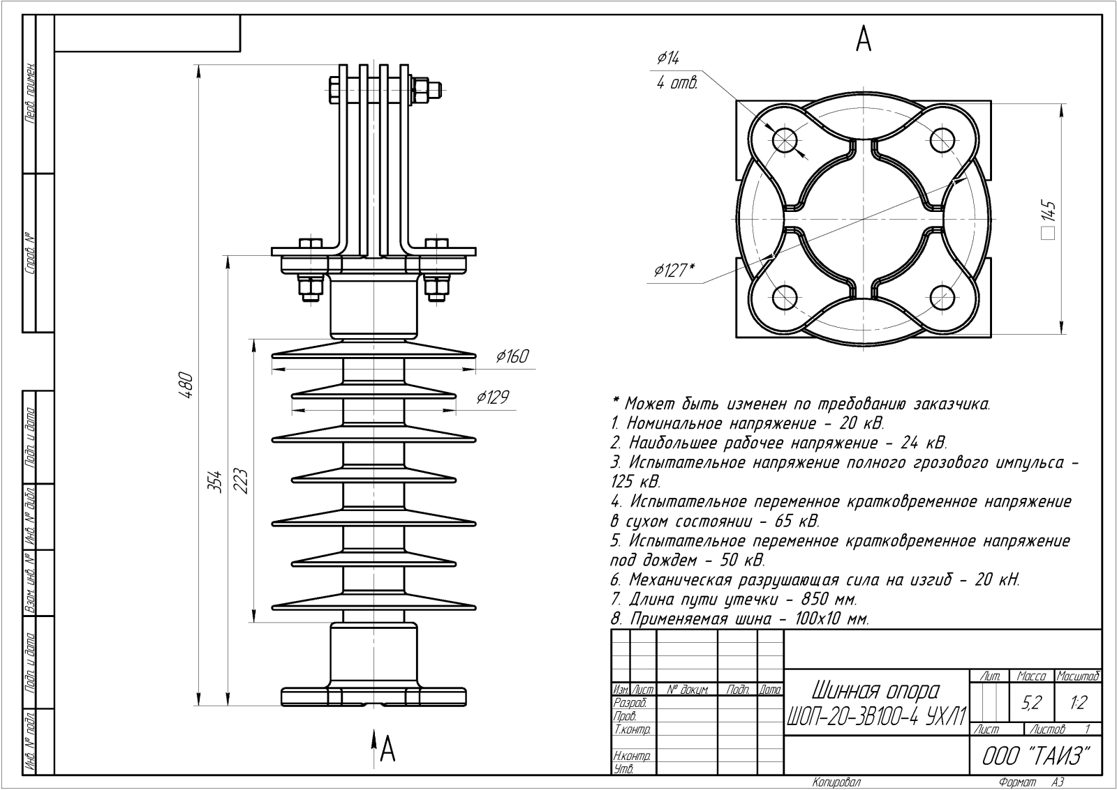 Главная » Продукция » Шинные опоры » Шинные опоры для жесткой ошиновки с вертикальными плоскими шинами » Шинные опоры для жесткой ошиновки 20 кВ » ШОП-20-3В100-4 УХЛ1